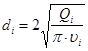 Диаметры воздуховодов на каждом участке определяют по формуле: