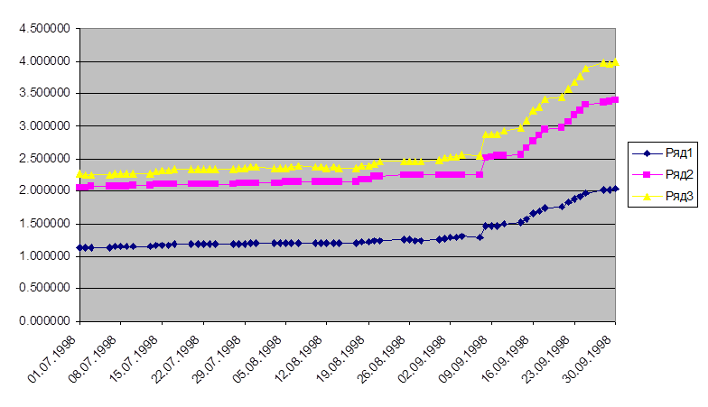Ринкові курси на момент розрахунку по форвардній угоді на 01.09.1998 року