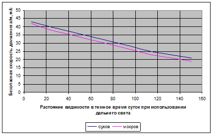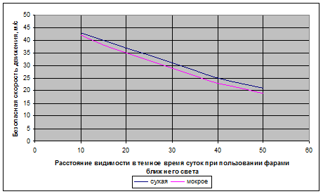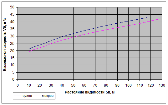 На основании таблицы 1 строится график зависимости остановочного пути автомобиля от скорости движения Sост