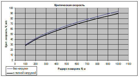 | Критическая скорость по условию управляемости (м/с) при угле поворота управляемых колёс,º