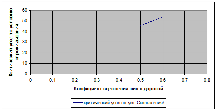 Рисунок 9 - График зависимости критического угла по условию скольжения от коэффициента сцепления шин с дорогой