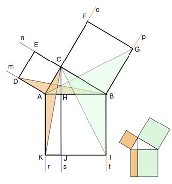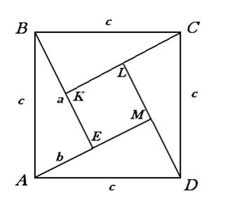 «Квадрат, построенный на гипотенузе прямоугольного треугольника равновелик сумме квадратов построенных на катетах».