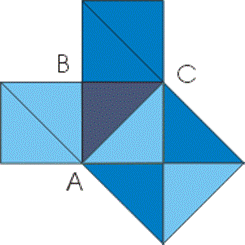 Например, для треугольника АВС: квадрат, построенный на гипотенузе АС, содержит 4 исходных треугольника, а квадраты, построенные на катетах, - по два. Теорема доказана.
