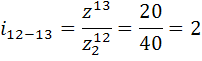 Передаточное отношение цилиндрической передачи привода сбрасывателя: