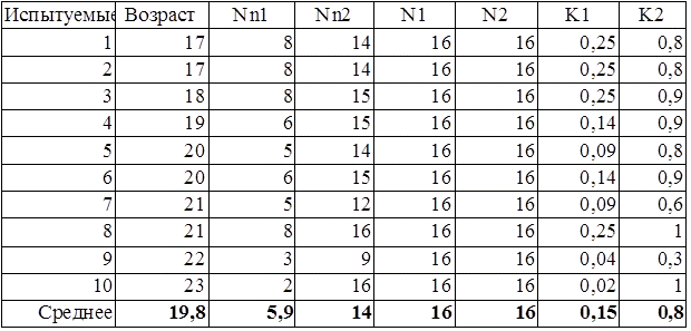 и коэффициент непосредственного запоминания испытуемых