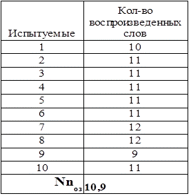 Таким образом, средний показатель продуктивности непосредственного запоминания испытуемых равен 9,47.