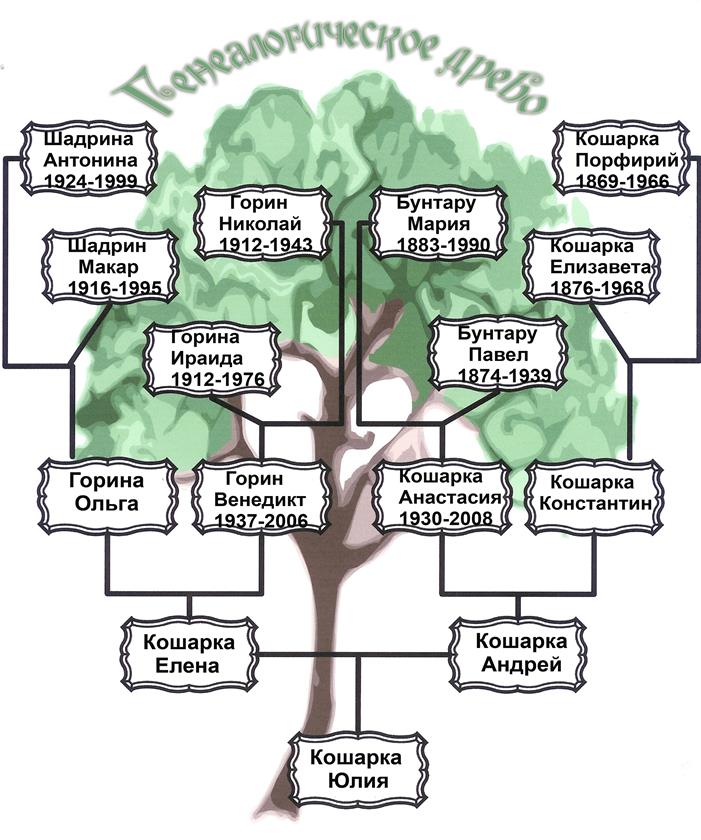 Проводя исследование, я заинтересовалась своим генеалогическим древом. После его составления мне было интересно узнать, что означает та или иная фамилия в моём древе. По словам папы: корень фамилии Кошарка - "кош", что по словарю иностранных слов, вошедших в состав русского языка, в переводе с тюркского означает: шалаш, корзина; сборный пункт. Местопребывание запорожцев, отчего и начальник их получил название кошевого атамана или просто кошевого.