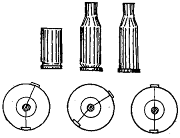 • наличие следов патронного упора и отражателя на донышке, выбрасывателя на передней поверхности закраины шляпки, магазина и патронника на корпусе;