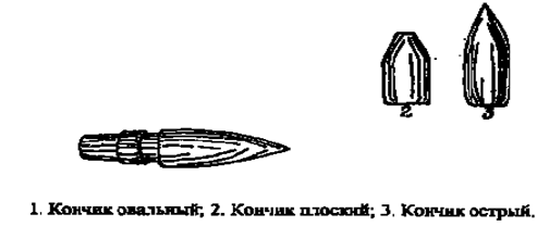 • форма пули (кончик: овальный, острый, плоский; хвостовая часть: цилиндрическая, конусная);