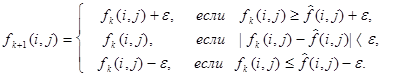 Из логики предлагаемого метода следует, что значение должно быть положительным. Сглаженное изображение на следующем итерационном шаге определяем по формуле: