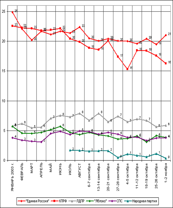 Во второй главе будет рассматриваться в качестве примера работа РДП "Яблоко" со средствами массовой информации в период с сентября по декабрь 2003 года.