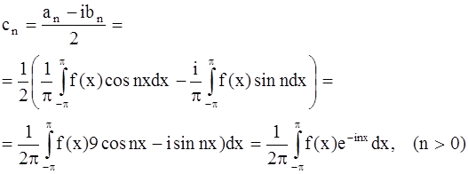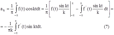 Предположим, что интеграл от функции, стоящей в левой части этого равенства, равняется сумме интегралов от членов этого ряда. Это будет выполняться, если предположить, что числовой ряд, составленный из коэффициентов данного тригонометрического ряда, абсолютно сходится, т. е.. сходится положительный числовой ряд