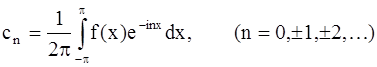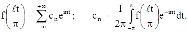 Пусть периодическая функция ƒ(х) с периодом 2π такая, что она представляется тригонометрическим рядом, сходящимся к данной функции в интервале (-π, π), т. е. является суммой этого ряда: