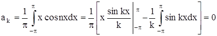 Ряд (1) мажорируем и его можно почленно интегрировать в промежутке (-π, π). Проинтегрируем обе части равенства (2):