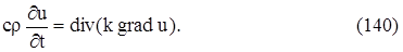 где ∆u – оператор Лапласа. Уравнение (142) и есть уравнение теплопроводности в пространстве.