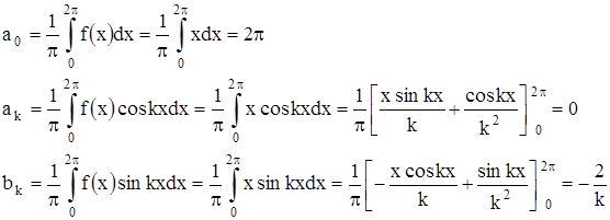 2. Определение коэффициентов ряда по формулам Фурье.