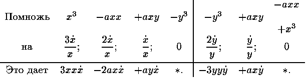 и помножь их, как указано ниже( Звездочкой Ньютон обозначает члены, которые можно отбросить, но которые потребуются в дальнейшем. ).