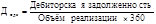 ).=деб зад-ть/(Vреализ *360)