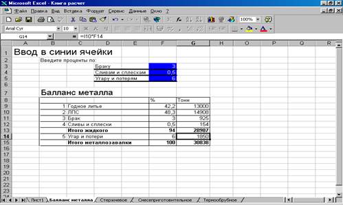 Рис.2 Окно расчета баланса металла