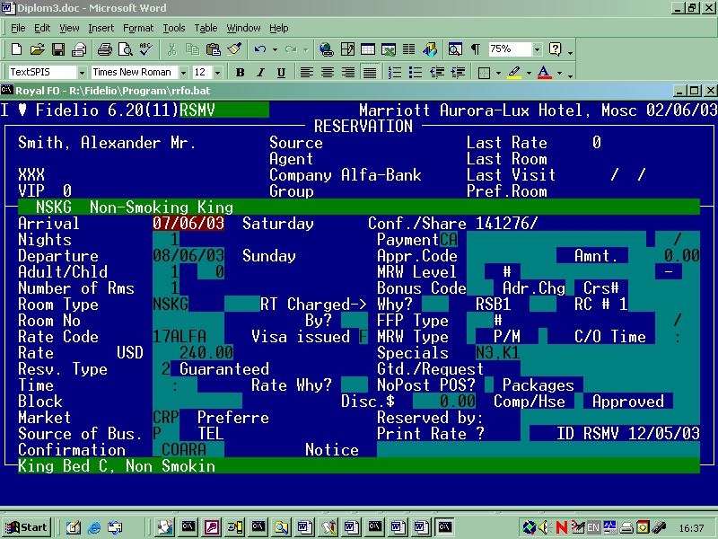 процесс бронирования.