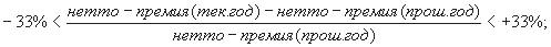 - отношение разницы в сборе нетто-премии за текущий и предыдущий годы к нетто-премии за предыдущий год. Это отношение должно находиться в пределах от -33% до +33% :