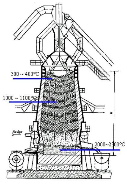 8. Сущность основного принципа работы доменной печи. Схема доменной печи с указанием температур.