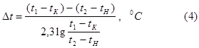 Среднюю разность температур газа и воды в скруббере (газ и вода движутся противотоком) определяют из выражения