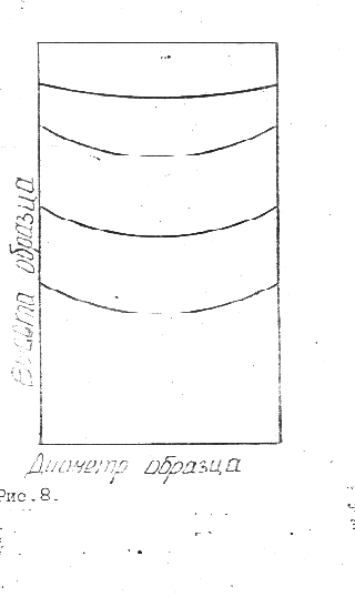 В вертикальном направлении каждый верхний слой оказывается- тоньше нижележащего. Изгиб слоев объ-ясняется меньшей скоростью перемещения порошка у стенки из-за трения, чем в центре. Наибольшая плотность получается на расс-тоянии около 0.2...0.3 наименьшего поперечного размера прессуе-мого изделия, что связано с действием сил трения между торцом пуансона и порошком.