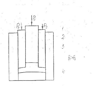 Рис.9 Схема прессования в прессформе сложного изделия: 1- пуансон,2-пуансон, 3-матрица,