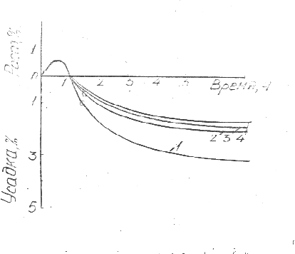 Рис.12 Усадка спрессованного порошка железа при 890 С при различном давлении: 1-400 мн/м2,
