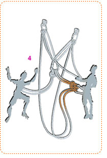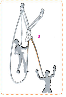 Имеет недостаток, что рывок приходится непосредственно на базу. В предыдущем случае рывок приходился сначала на беседку страхующего, что приводит к дополнительной амортизации и уменьшает рывок, оберегая при этом базу от возможного вырыва ненадежных точек страховки.