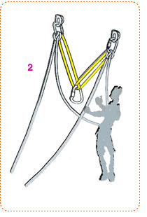 — состоит из беседки и обвязки, либо только из беседки, одевается на человека. Веревка ввязывается в систему или присоединяется к системе с помощью карабина с муфтой. Тормозное устройство