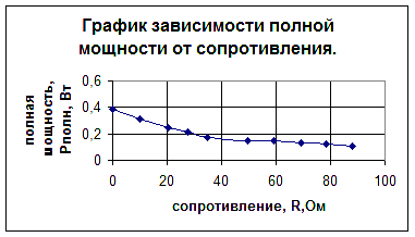 Полная мощность является суммой полезной мощности и мощности, выделяющейся на внутреннее сопротивление: