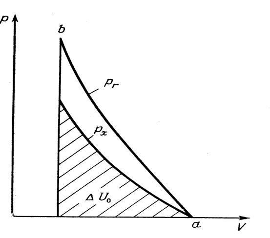 к P,V соответствующих конечным значениям давления и объема после ударного нагружения. Если эта линия пересекает Гюгонио в точке перегиба, как на рис.6, то область выше перегиба и ниже точки повторного пересечение линии Релея с Гюгонио (то есть между Pa