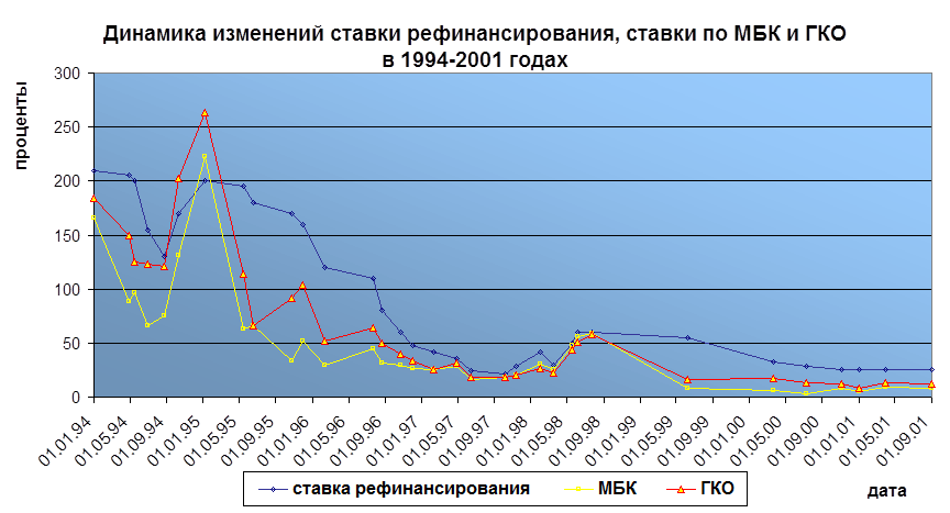 Влияние ставки рефинансирования Банка России на экономику. Динамика ставки рефинансирования и процентной ставки по МБК в 1992-2001 г.г. Санкт-Петербург