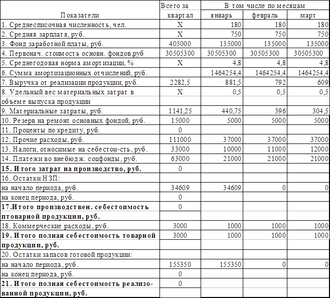· Составить план расходов по производству металлоизделий ОАО «Волга» за 1 квартал (табл. 2)