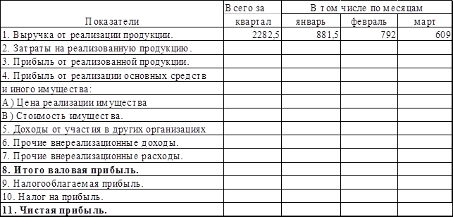 · Определить валовую и чистую прибыль завода и составить прогноз о прибылях и убытках за 1 квартал (табл. 7).