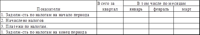 · Рассчитать сумму задолженности завода по налогам на конец 1 квартала (табл. 8).