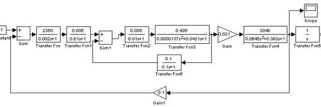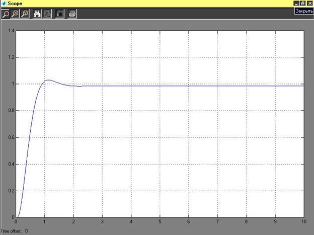 Динамическая модель построена в пакете MATHLAB5.1, полученный переходной процесс работы системы при подаче управляющего воздействия представлен на рисунке 4.2.