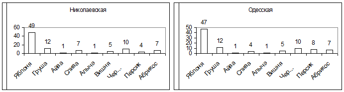 1.Диаграммы соотношений плодовых пород по югу Украины, %1