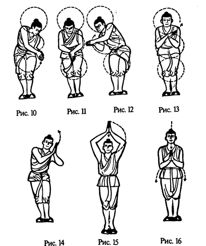 напряжения. Повороты туловища и движения рук мягкие и пластичные. При повороте ног следует напрягать половые органы. Расправляя, руки, можно слегка вибрировать ими.