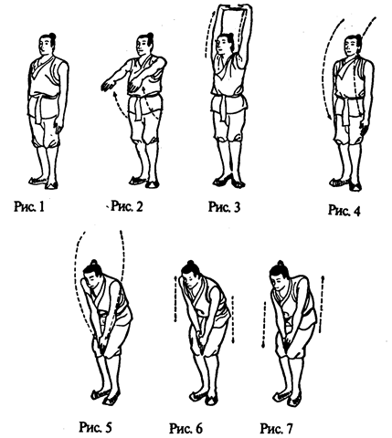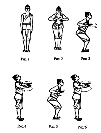 Упражнение „Возвращение к молодости" (I). Это упражнение может вернуть молодость, отсюда его название. Оно направляет энергию на поддержание деятельности „почек". Его лучше всего выполнять на свежем воздухе.