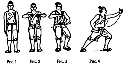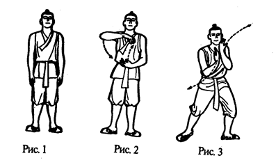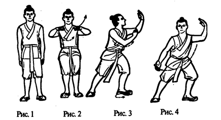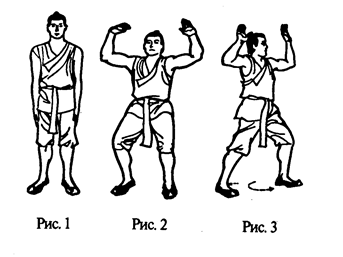 Встать, ноги поставить на ширину плеч, руки опустить, все мышцы расслабить. Взгляд устремлен, освободиться от всех мыслей, войти в состояние покоя (рис. 1).