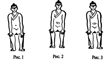 Встать прямо, ноги поставить на ширину плеч, руки опушены свободно, все мышцы расслаблены, смотреть перед собой (рис.1).