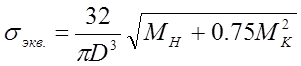 На статическую прочность вал рассчитываем по наибольшей возможной кратковременной нагрузке, повторяемость которой мала и не может вызывать усталостного разрушения. Так как вал в основном работает в условиях изгиба и кручения, а напряжение от продольных усилий не велики, то эквивалентное напряжение в наружного вала: