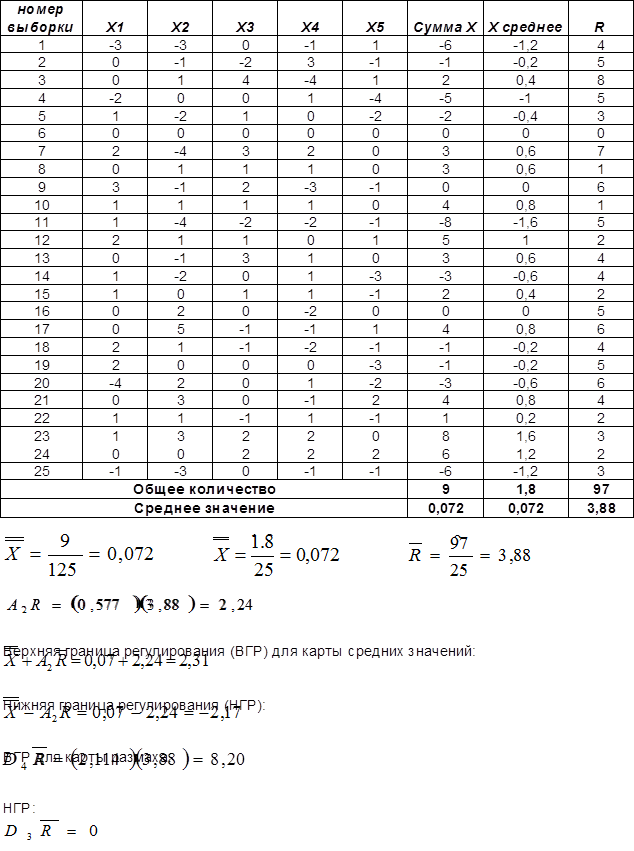2.1.2 Контрольные карты среднего арифметического значения и размаха......... 8