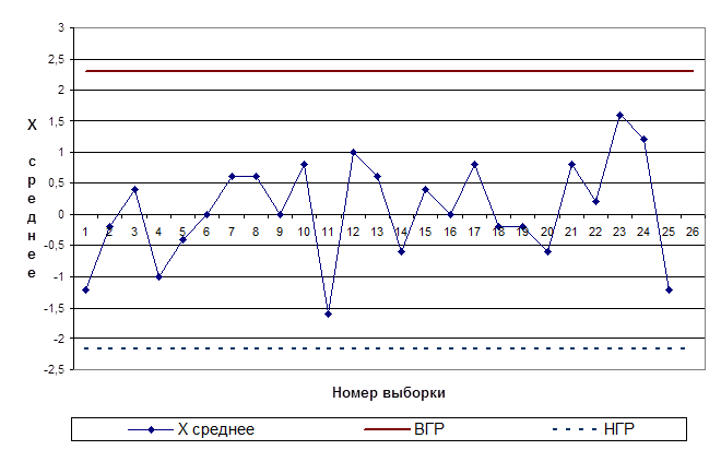 Если впоследствии какая-либо точка оказывается вне границ регулирования, то это значит, что появилась определенная причина разладки процесса.