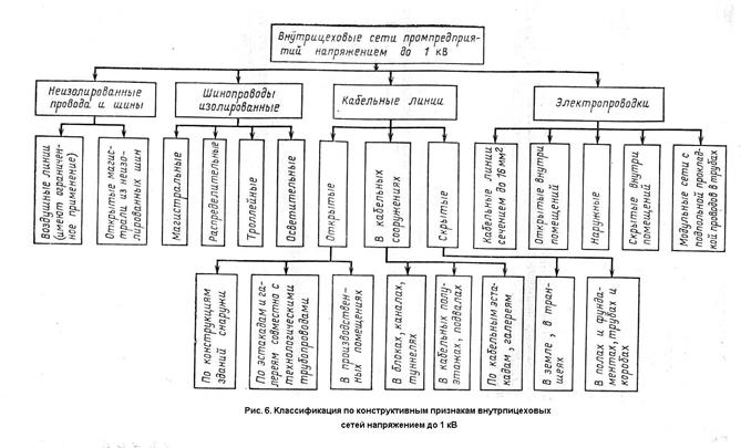 Сети напряжением до 1 кВ служат для распределения электроэнергии внутри цехов промышленных предприятий, а также для питания некоторых ЭП, расположенных за пределами цеха на территории предприятии. Цеховые электрические сети напряжением до 1 кВ являются составной частью СЭС промышленного предприятия и осуществляют непосредственное питание большинства ЭП. Схема внутри цеховой сети определяется технологическим процессом производства, планировкой помещений цеха, взаимным расположением ТП, ЭП и вводов питания, расчётной мощностью, требованиями бесперебойности электроснабжения, технико-экономическими соображениями, условиями окружающей среды.