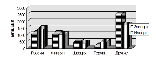 . Доля Финляндии была 2,3 % (11,9 млн. ЕЕК) и 2 % (8,9 млн. ЕЕК) соответственно (9, стр.20). Вся экономика Эстонии была по-прежнему ориентирована на Восток.