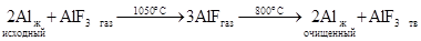 алюминий образует легколетучий субфторид AlF, который перегоняется в холодную зону (800°С), где вновь распадается (диспропорционирует) с выделением чистого алюминия: